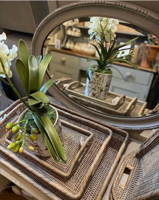 Handmade large Grey rattan Ottoman tray 57cm x 35cm x 8cm