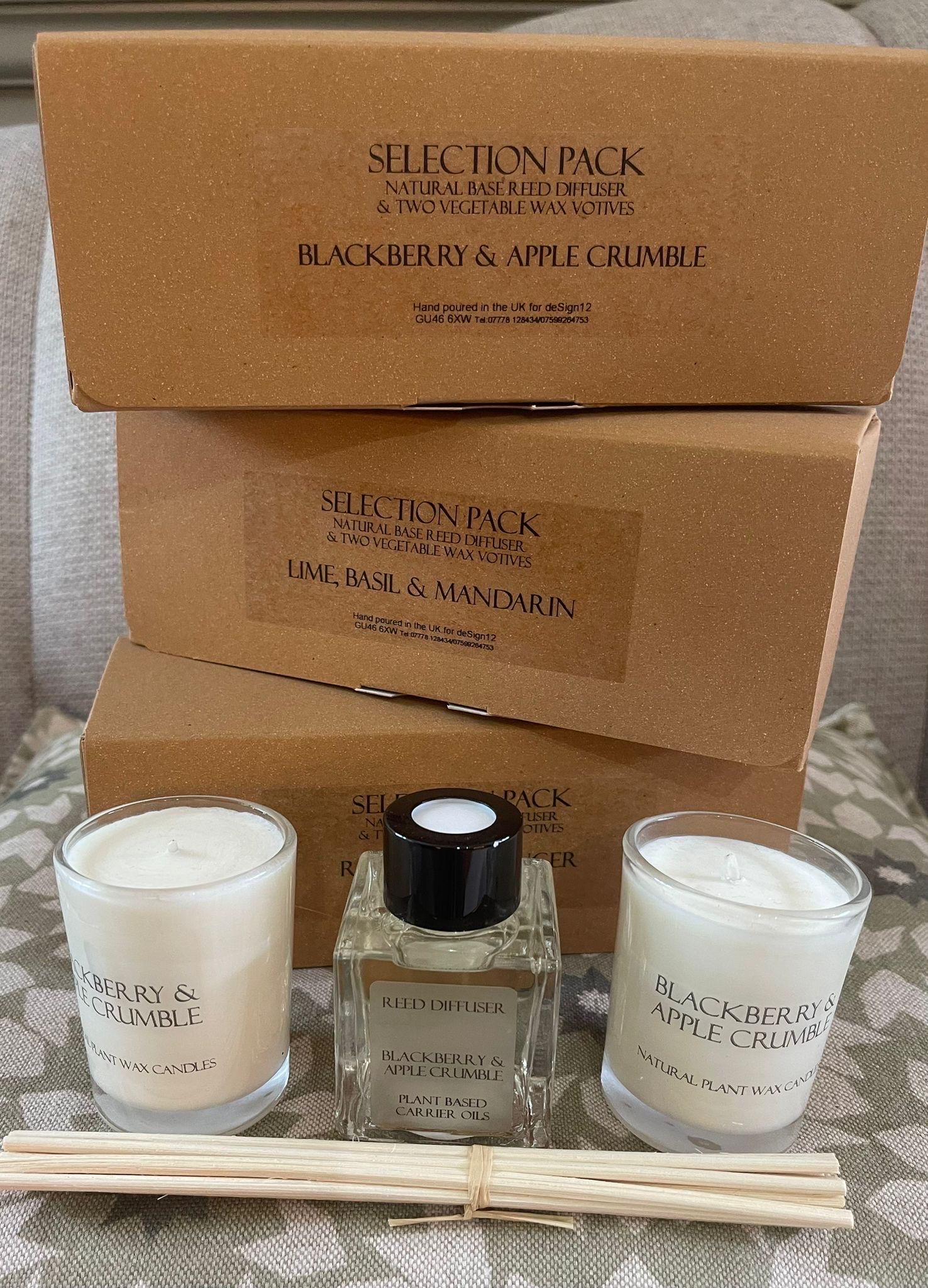 Scented Votive Candle & Reed Diffuser Gift Set: Natural Plant Wax FREE POSTAGE UK
