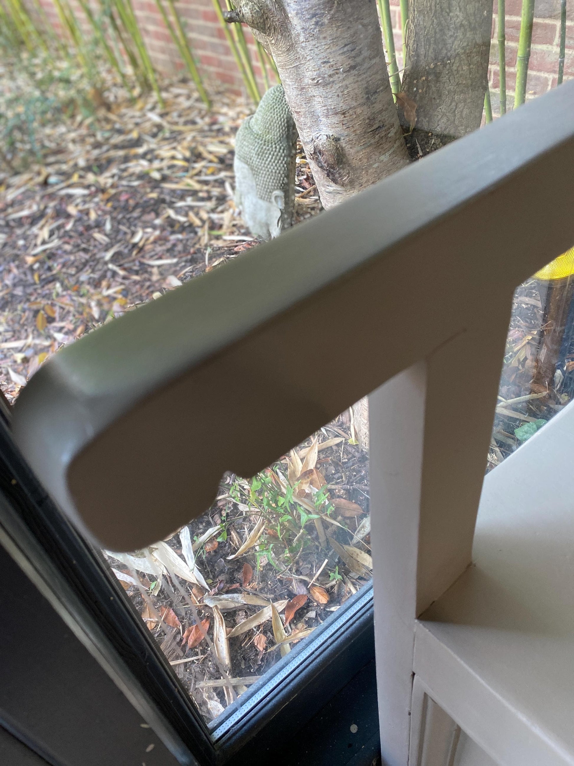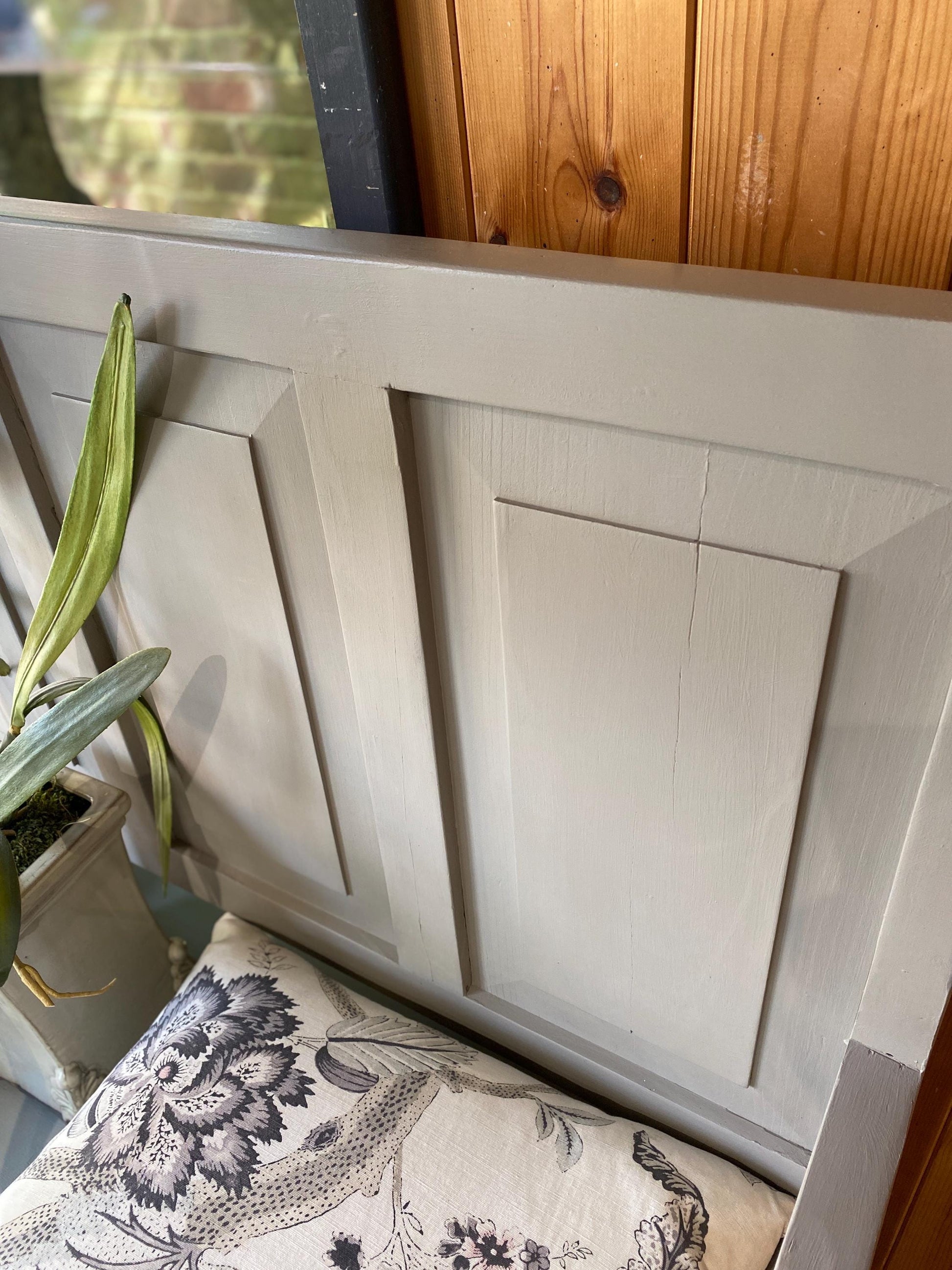 The back of the bench has also been painted and waxed to finish Width: 122 cm Height: 112 cm Depth: 67 cm ( which includes the arms)